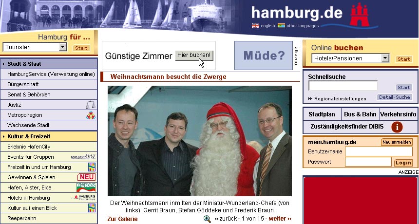 Interessant und pikant ist die ganze Angelegenheit aber erst, wenn man mal nachsieht, wer Stefan Göddeke überhaupt ist: Die Gebrüder Göddeke betreiben in Berlin eine Modellbahn-Anlage und sind mit dem Vorsatz angetreten, uns den Rang streitig zu machen. Die Redaktion von hamburg.de hat also einen direkten Konkurrenten (wobei ich den Begriff "Mitbewerber" vorziehe) an meiner statt genannt.